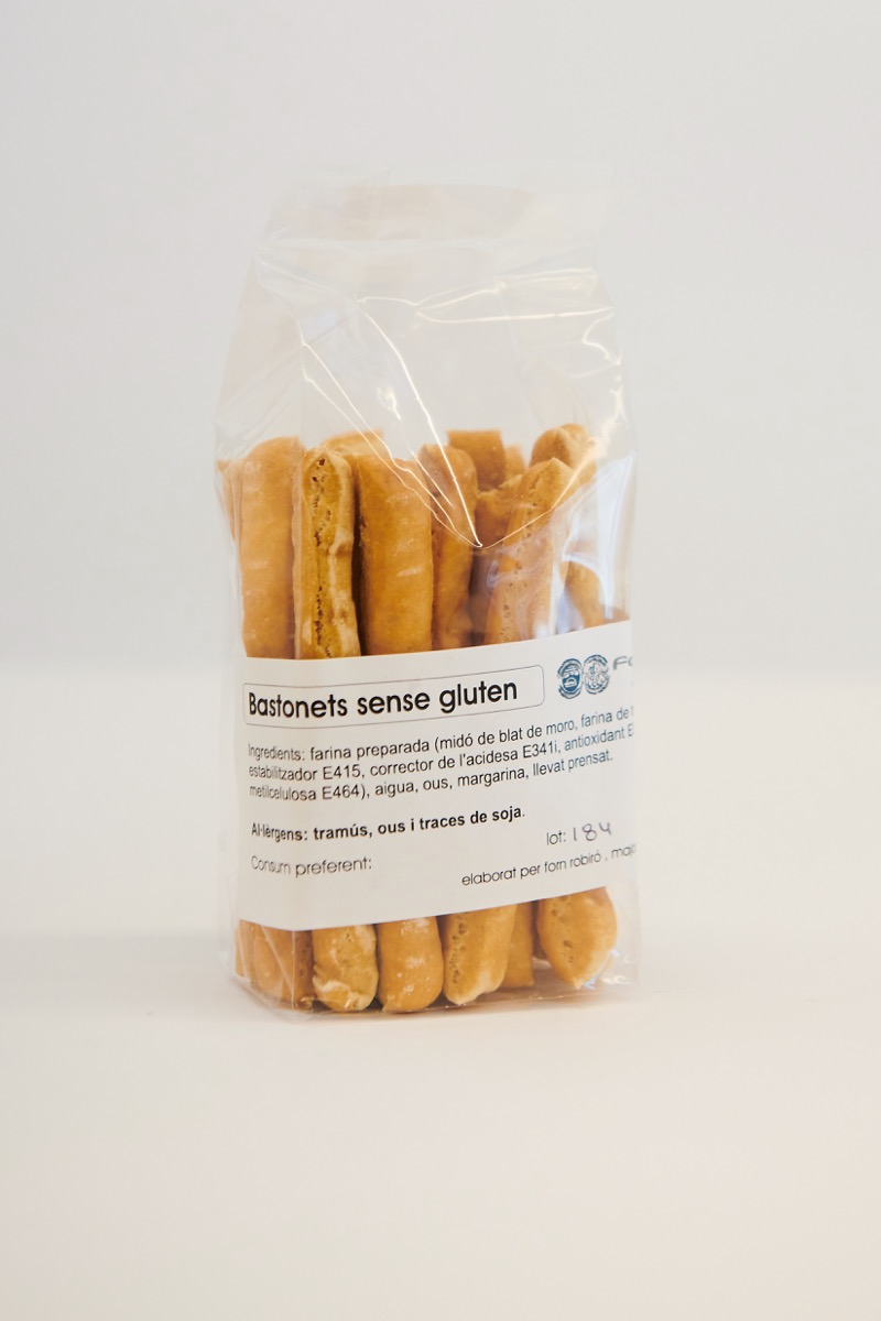 Ingredients: farina preparada (midó de blat de moro, farina de tramús, midó d’arrós, estabilitzador E415, corrector de l’acidesa E341i, antioxidant E300, espessant: metilcelulosa E464), aigua, ous, margarina i llevat prensat.