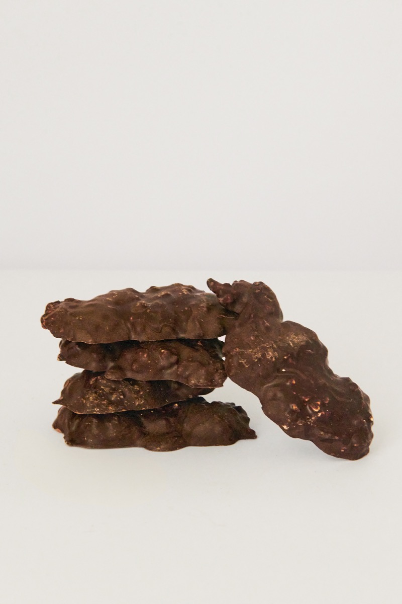Ingredients: farina preparada sense gluten (midó de blat de moro, farina de blat de moro, farina de tramús, midó d’arròs, metilcel·lulosa, clara d’ou, sucre, ametlla, cobertura de xocolata (lecitina de soja), herbes aromàtiques i aroma de llimona.