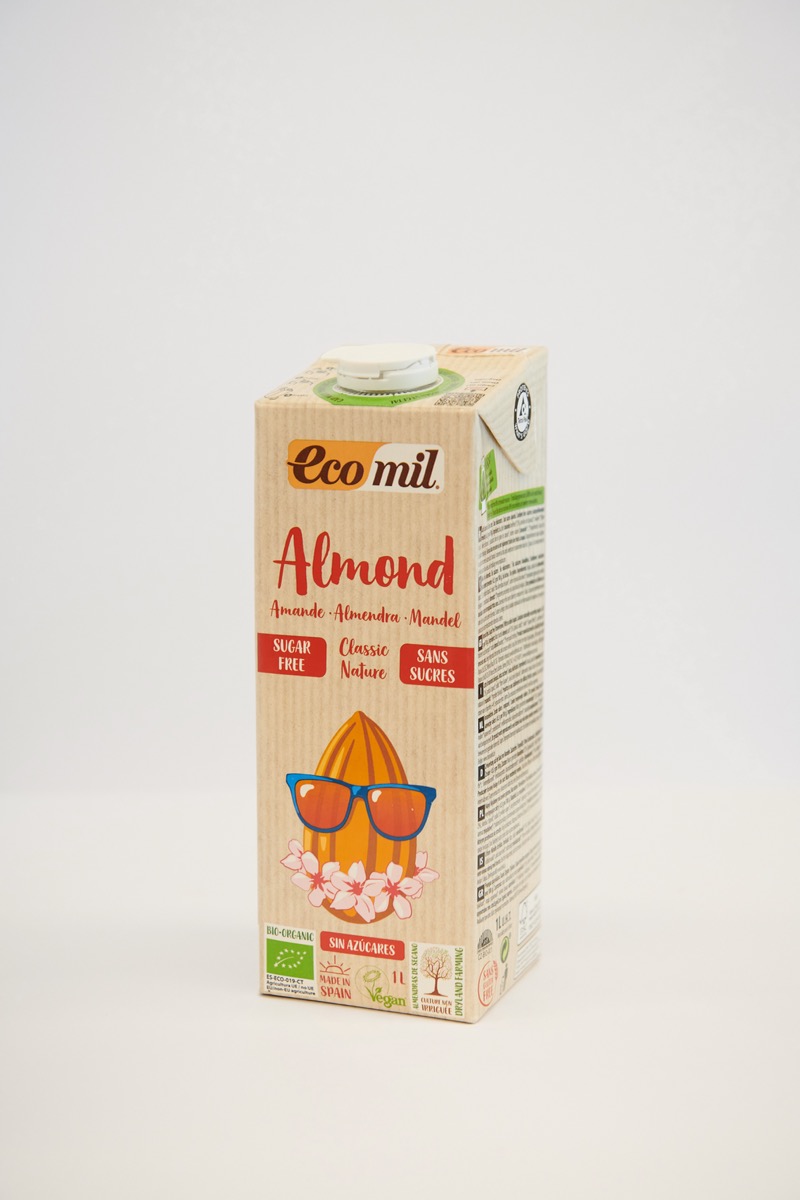 Ingredients: aigua, ametlles (7%), xarop d’atzavara, midó de tapioca, alga marina calcària: Lithothamnium calcareum i aroma natural d’ametlla. Tots els ingredients procedents de l’agricultura ecològica.